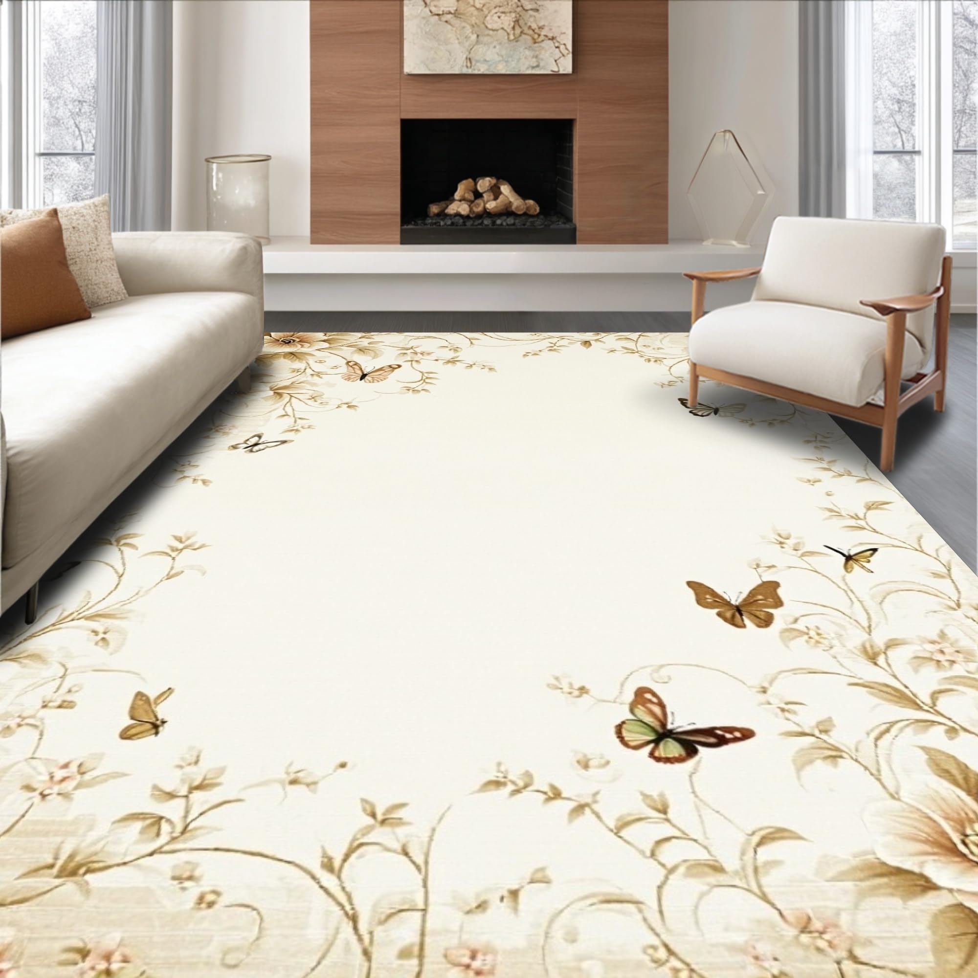 Abstract Butterfly Floral Beige Bloom Motif Area(Beige)