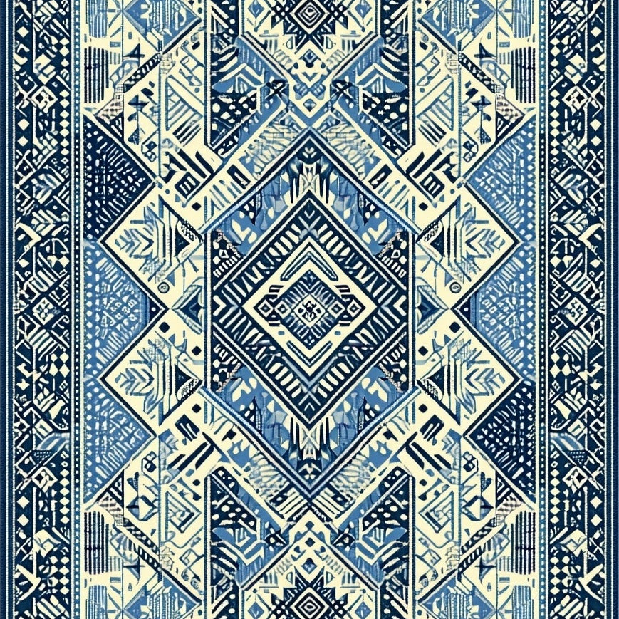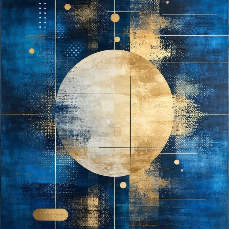 Abstract Boho Area with Deep Blue and Gold Accents(Blue)