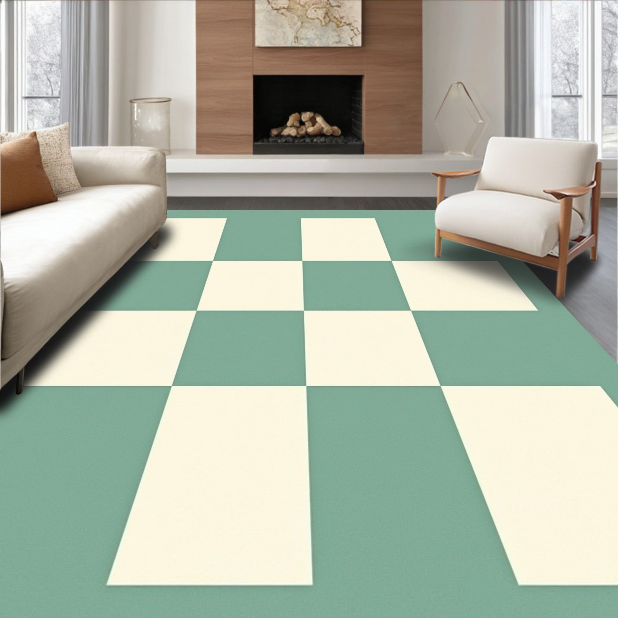 Abstract Bauhaus Inspired Checkerboard Floor Covering(Green)