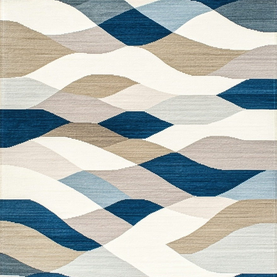 Contemporary Area Blue & Beige Blend Geometric Waves(Beige)