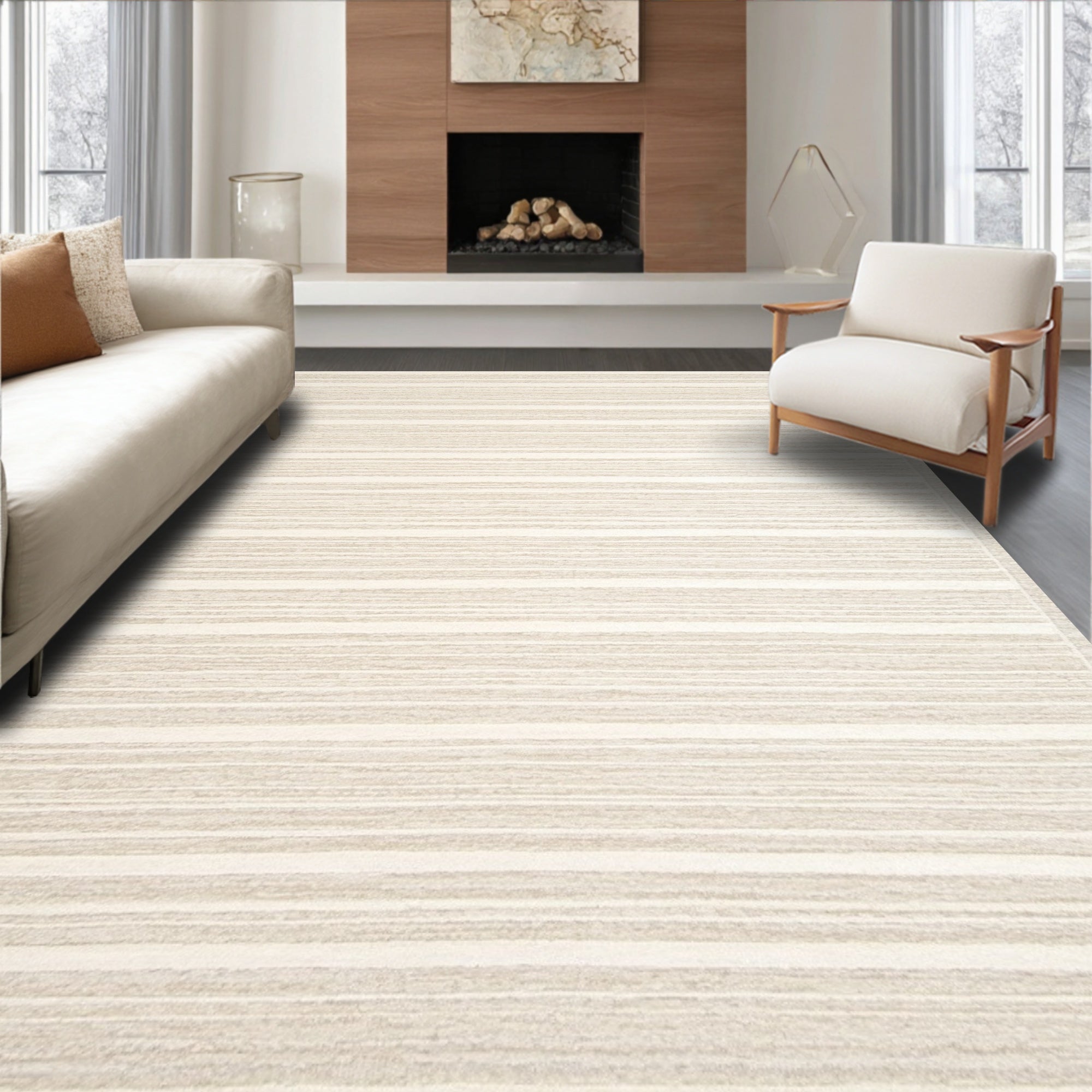 Contemporary Area Beige with Subtle Textured Stripes Design(Beige)