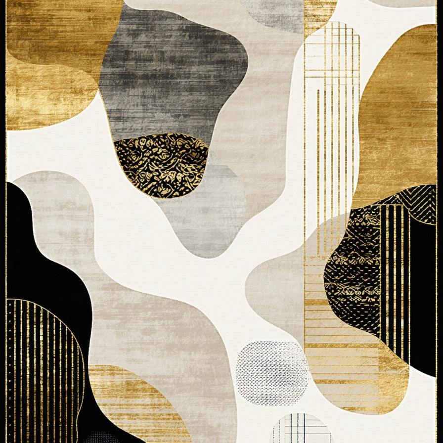 Contemporary Beige Area Black Gold Abstract Accent(Beige)
