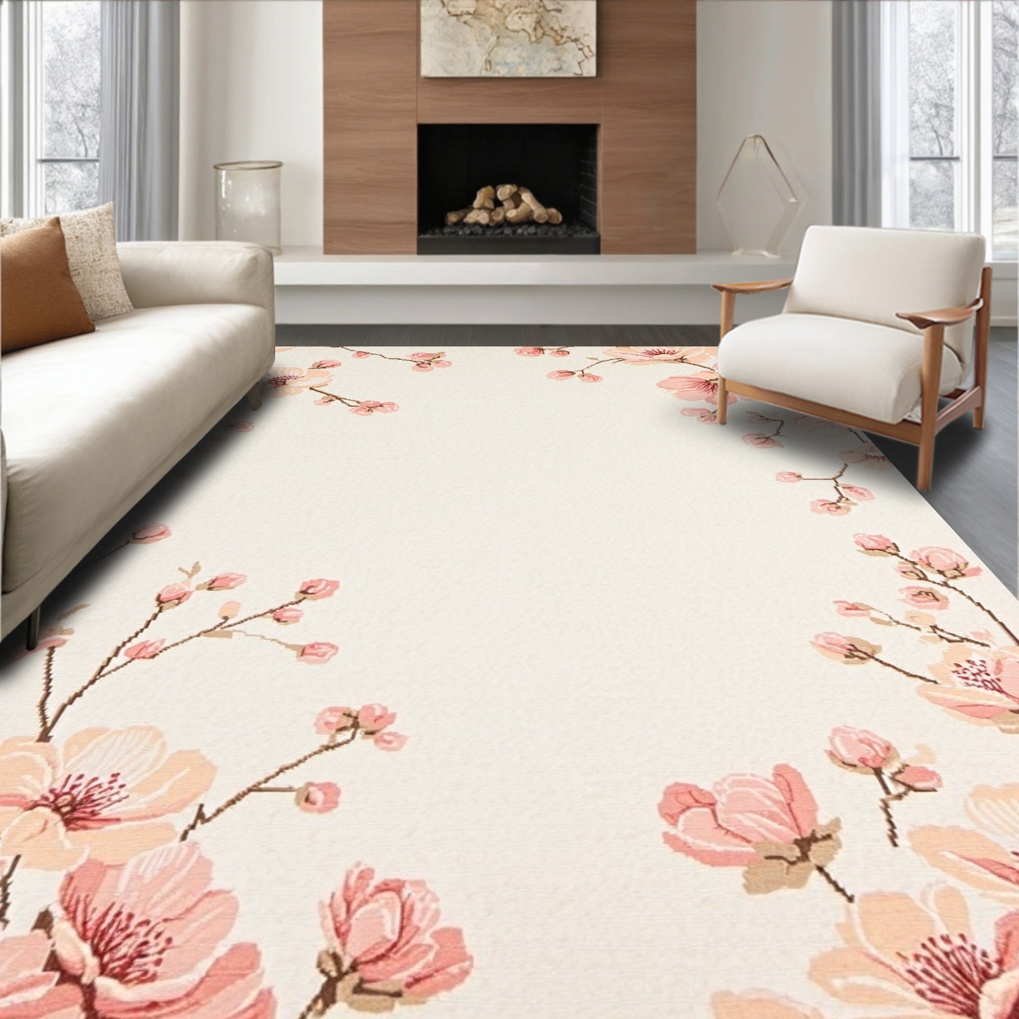 Contemporary Beige Area With Scattered Blush Blossom Print(Ivory)
