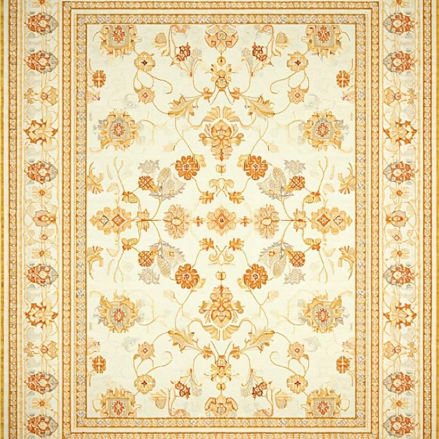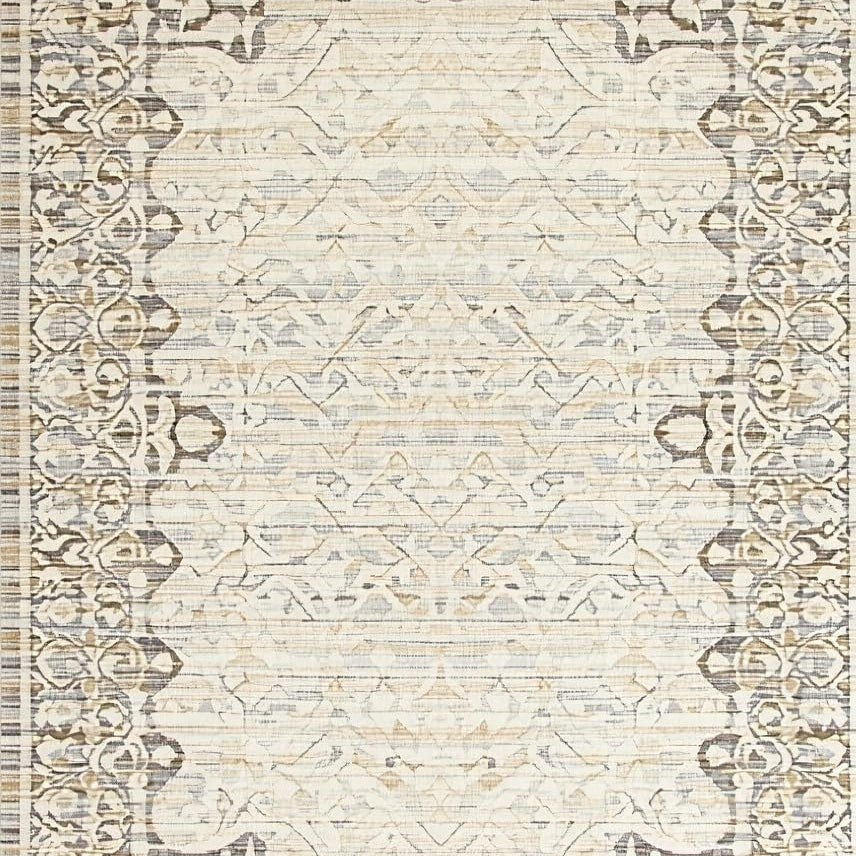 Contemporary Beige Low Pile Abstract Bordered Area(Beige)