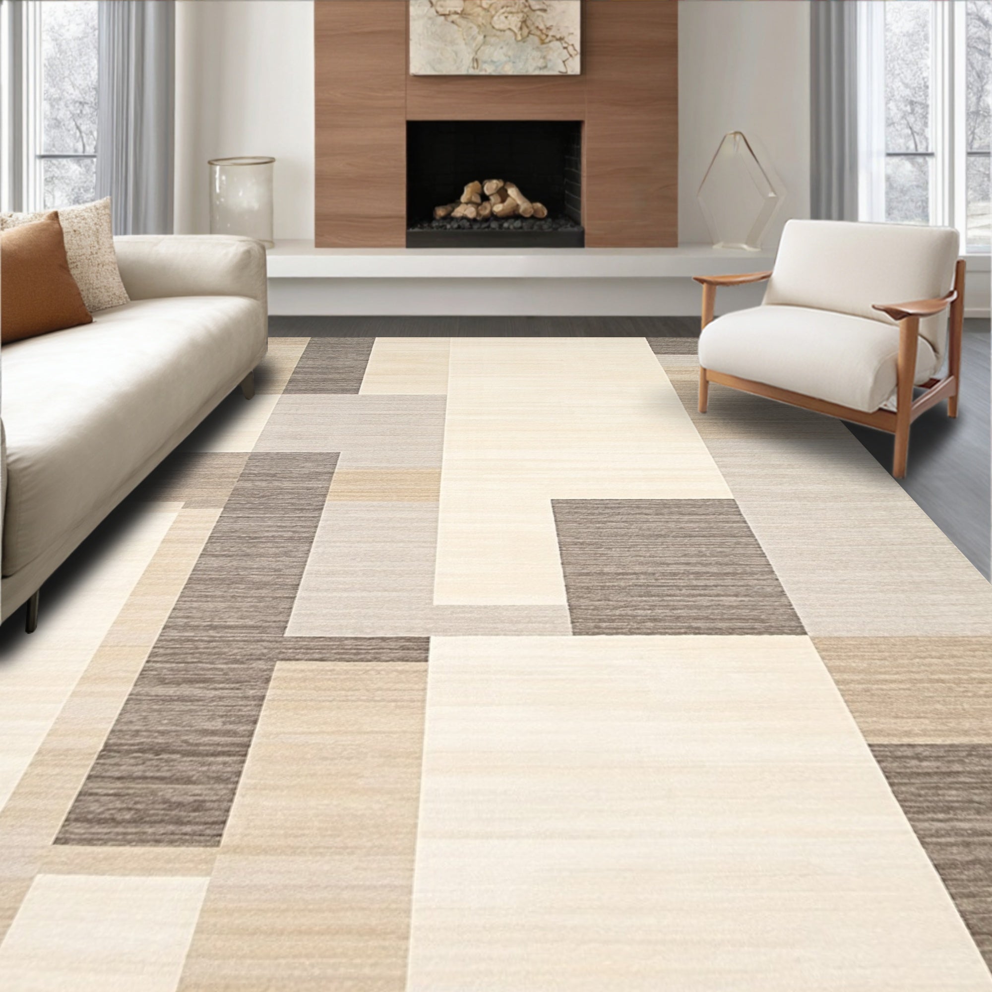 Contemporary Beige with Cashmere Effect and Abstract Design(Beige)
