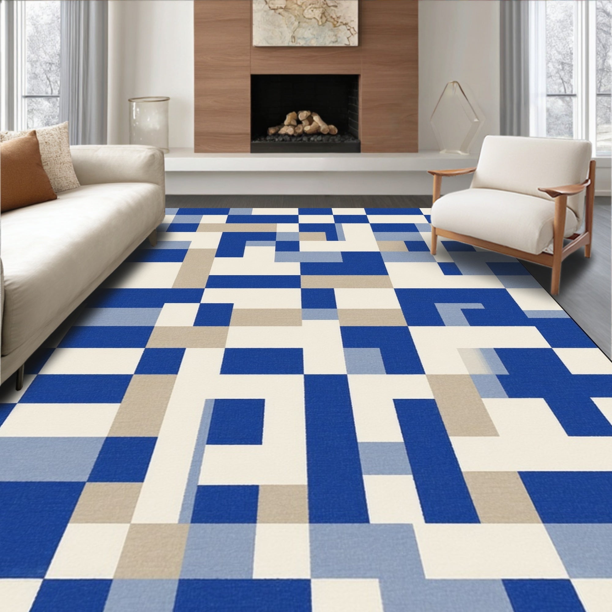 Contemporary Blue Beige Area Modern Geometric Design(Blue)