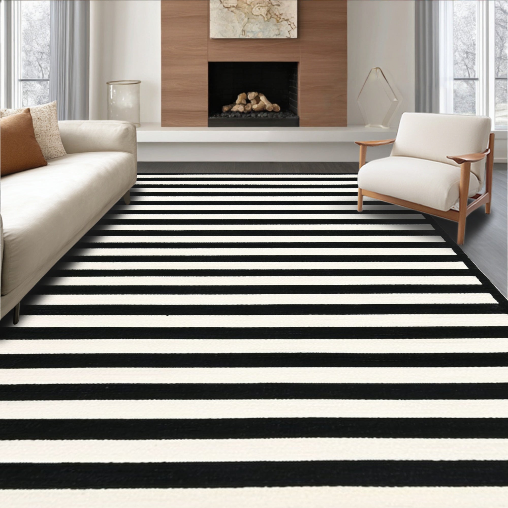 Contemporary Black White Stripe Linear Geometric(Gray)