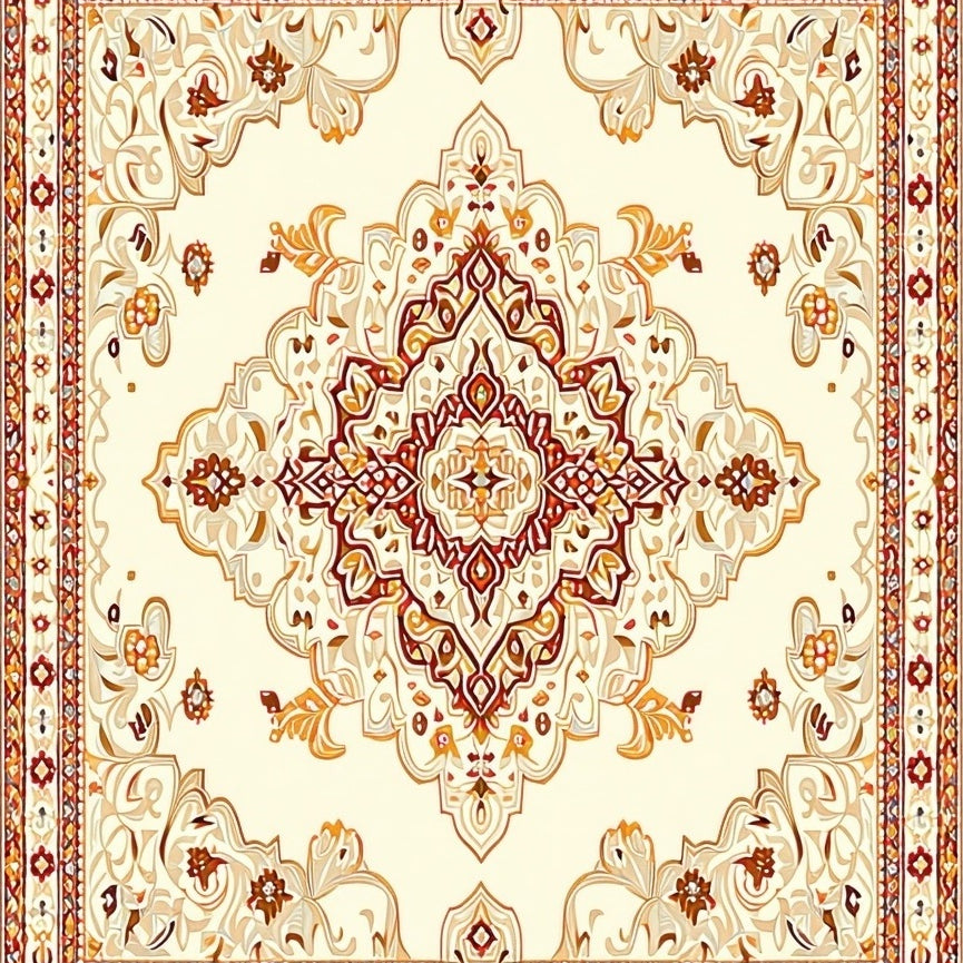 Contemporary Boho Medallion with Intricate Caramel and Cream(Ivory)