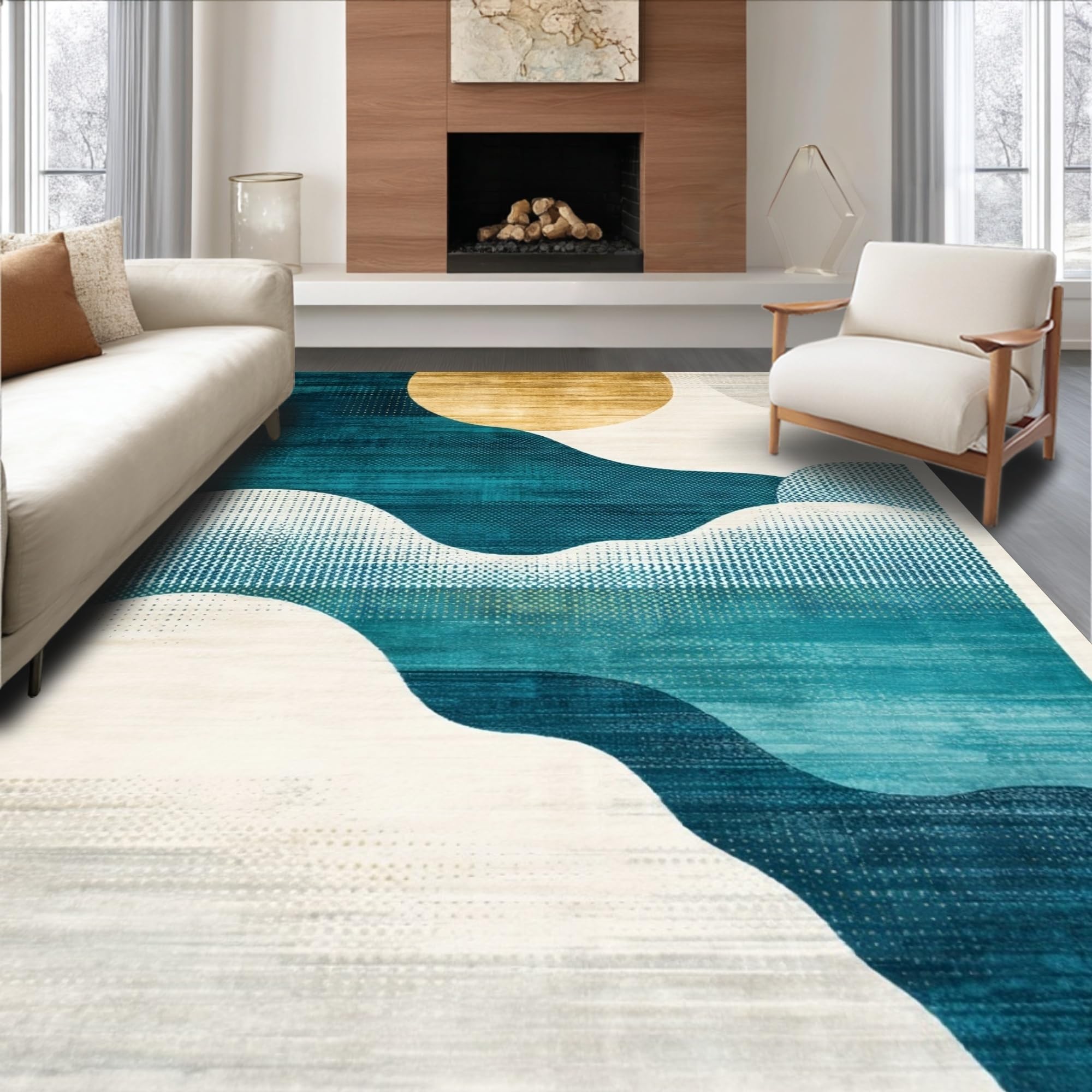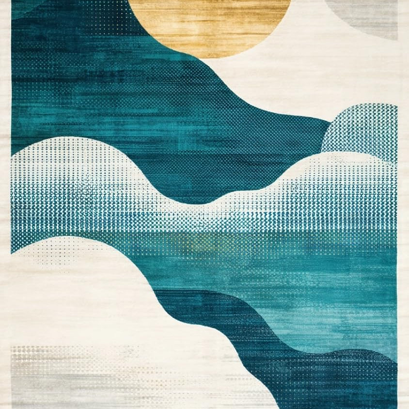 Contemporary Checked Design Area in Warm Neutral Tones(Beige)