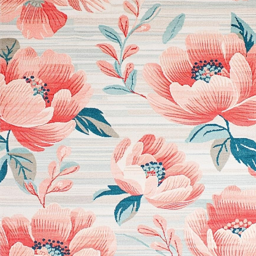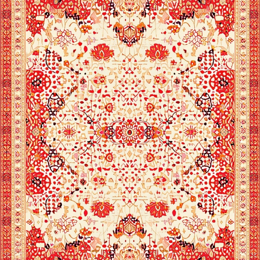 Contemporary Coral Spotted Area With Floral Intricate Design(Red)