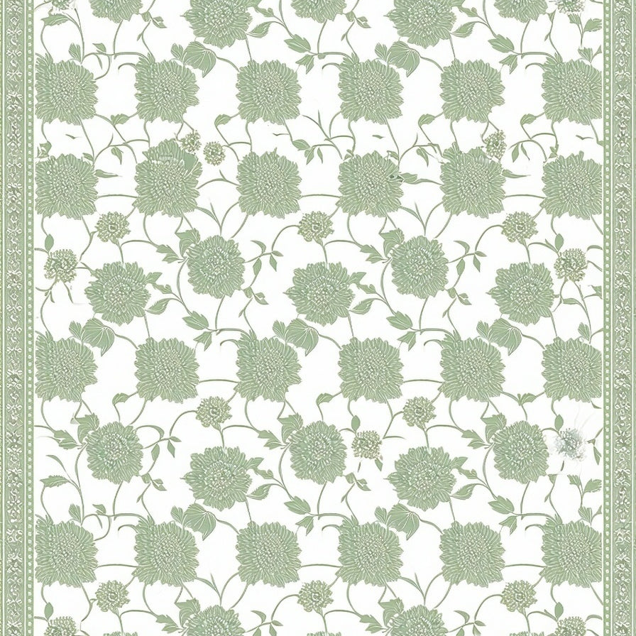 Contemporary Dahlia Blossom Area Rug Set in Soft Sage Green Palette(White)