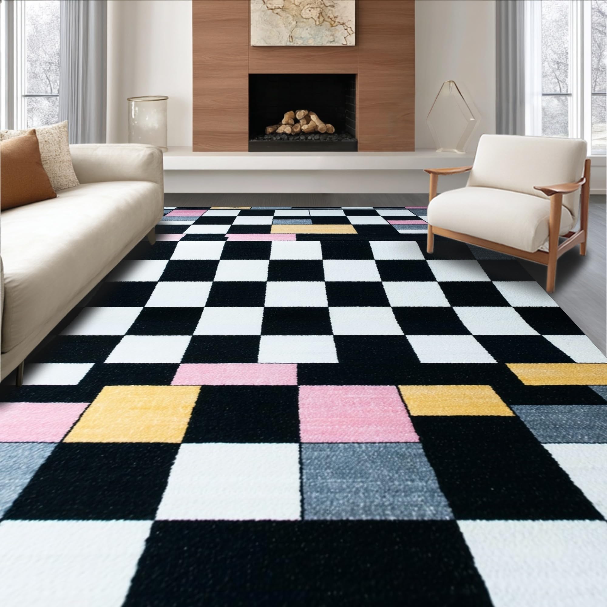 Contemporary Geometric Design Runner Area with Dynamic Shapes(Blue)