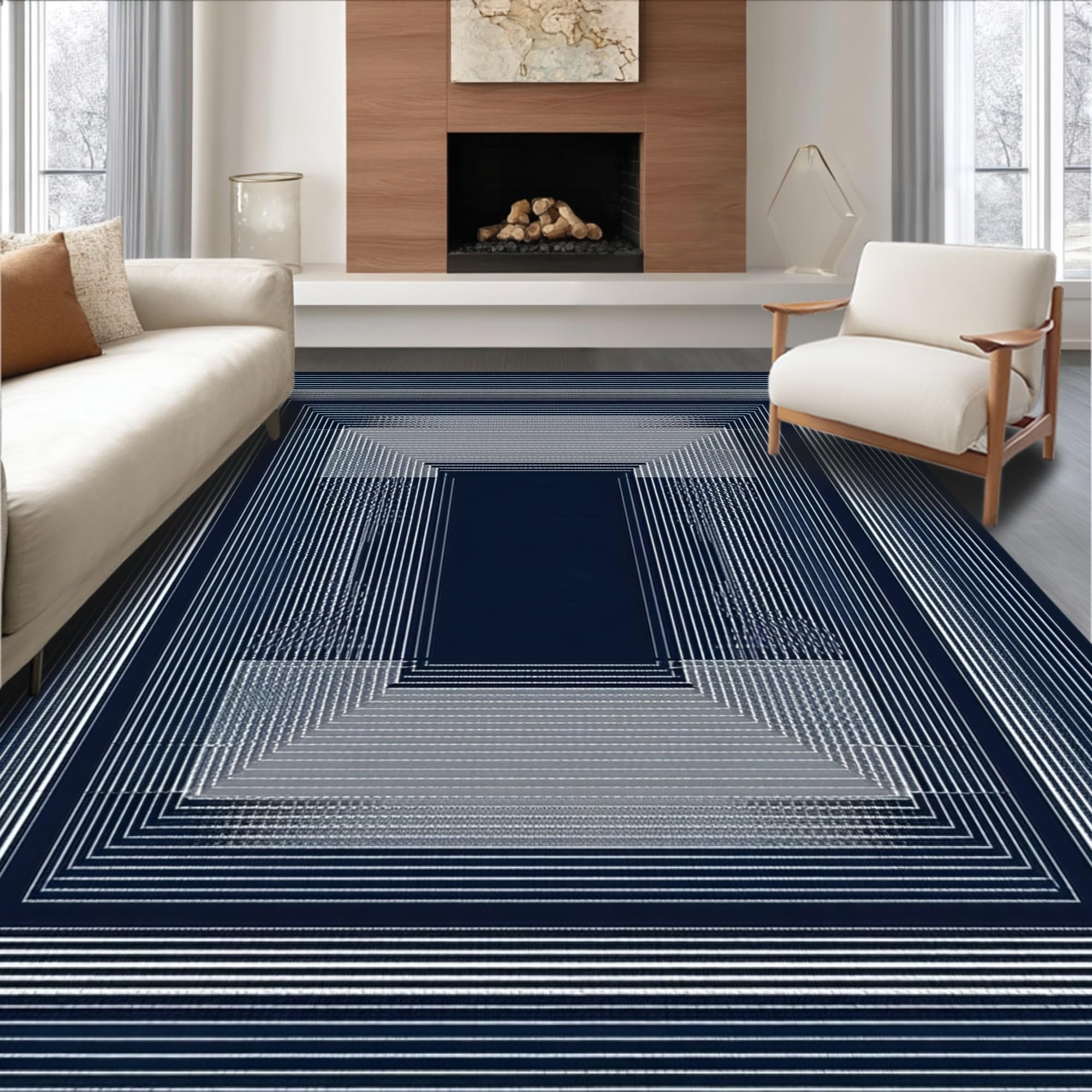 Contemporary Geometric Rug Artistic Black White & Gold Flair(Black)