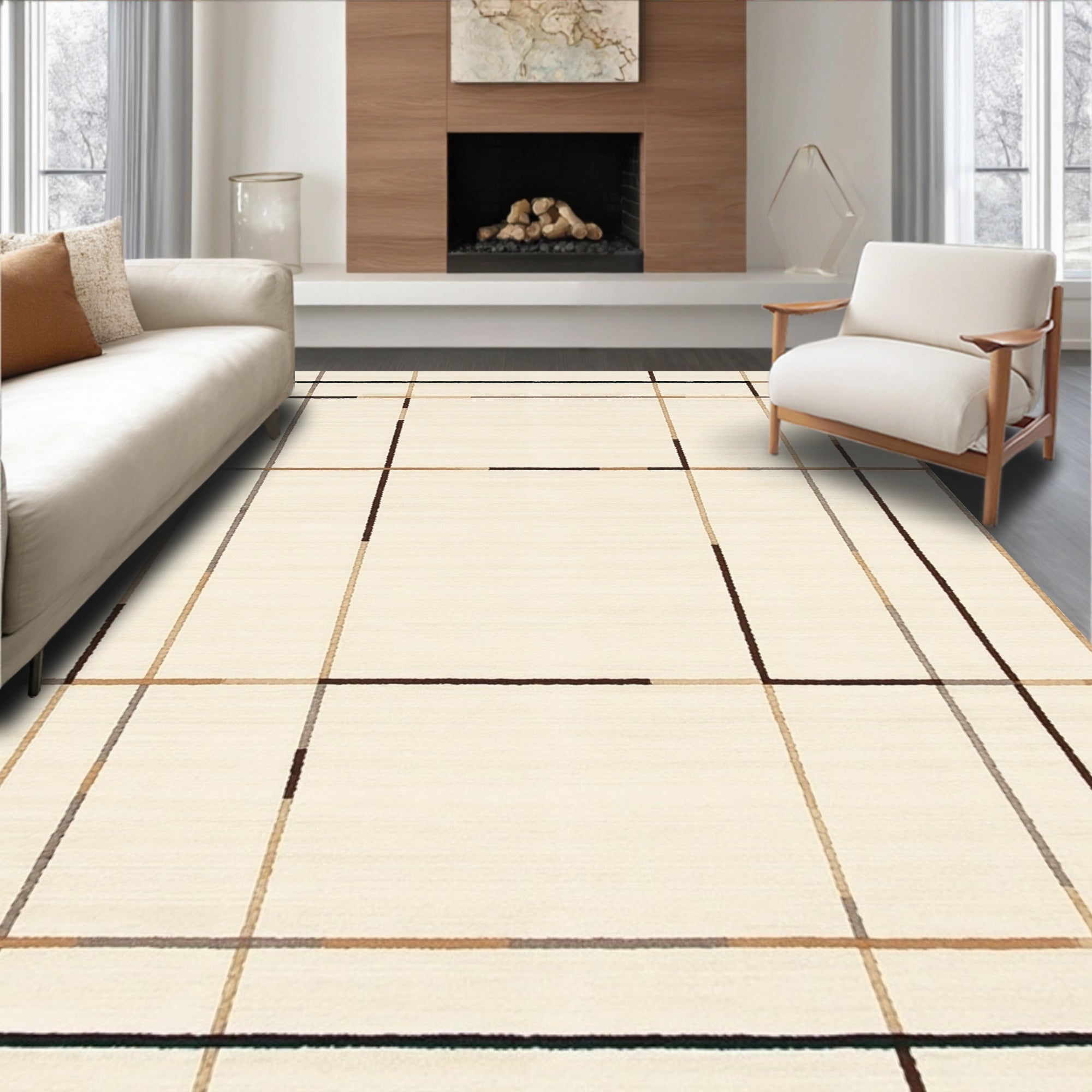 Contemporary Geometric Neutral Beige Area Modern Design(Beige)