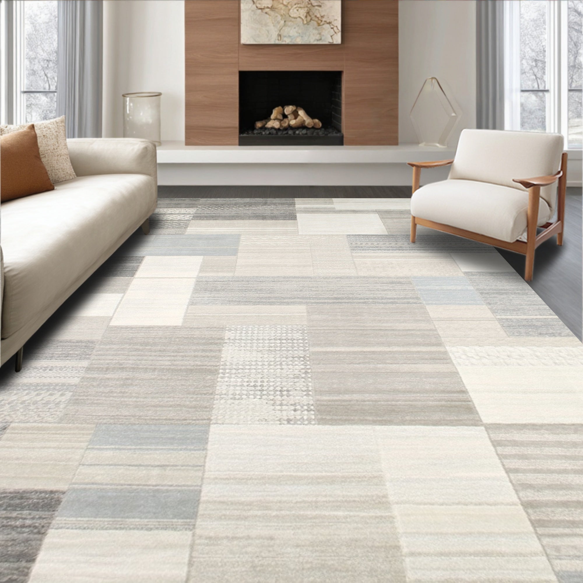 Contemporary Geometric Patchwork Area with Interlocking Beige Panels(Gray)