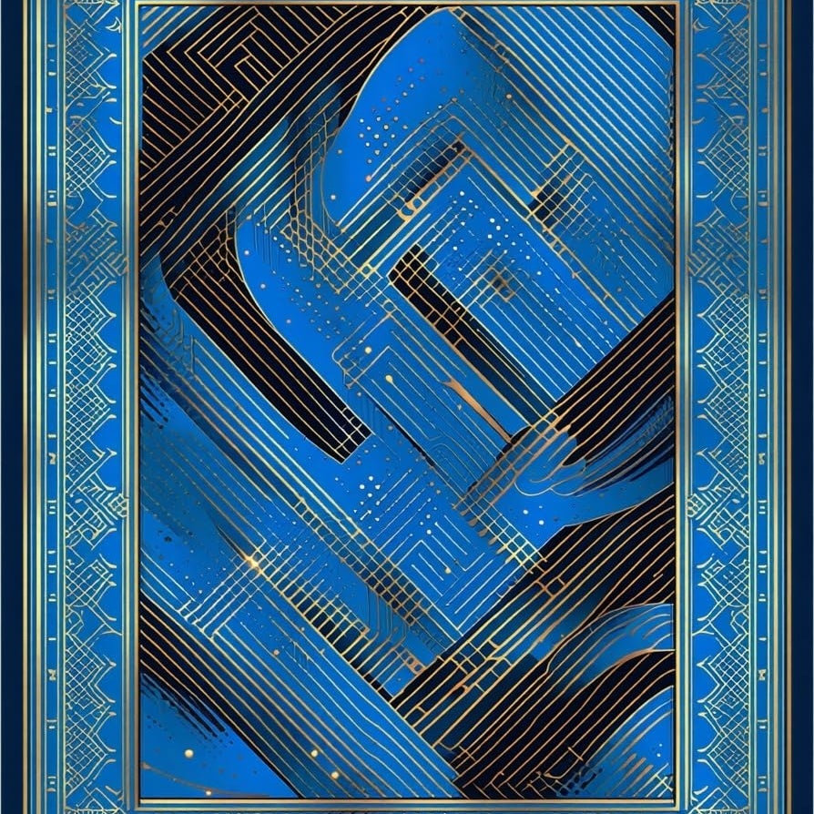 Contemporary Gold Trimmed Geometric Design(Blue)