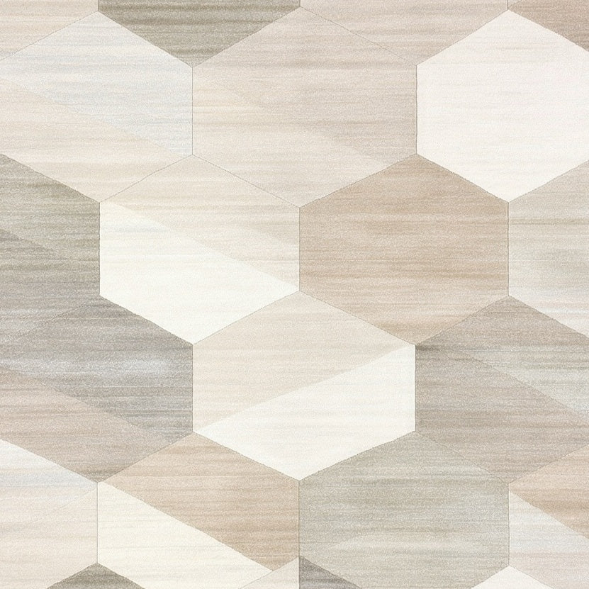 Contemporary Handcrafted Area with Interlocking Hexagon(Beige)