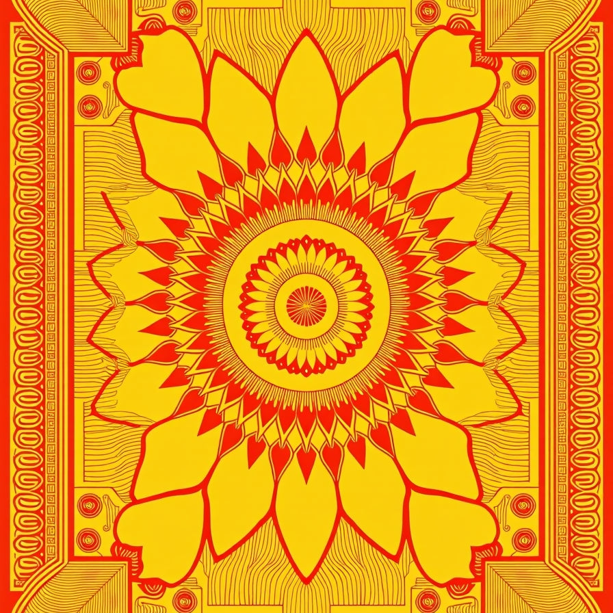Contemporary Inspired Layout with Layered Petal Structures and Curves(Red)