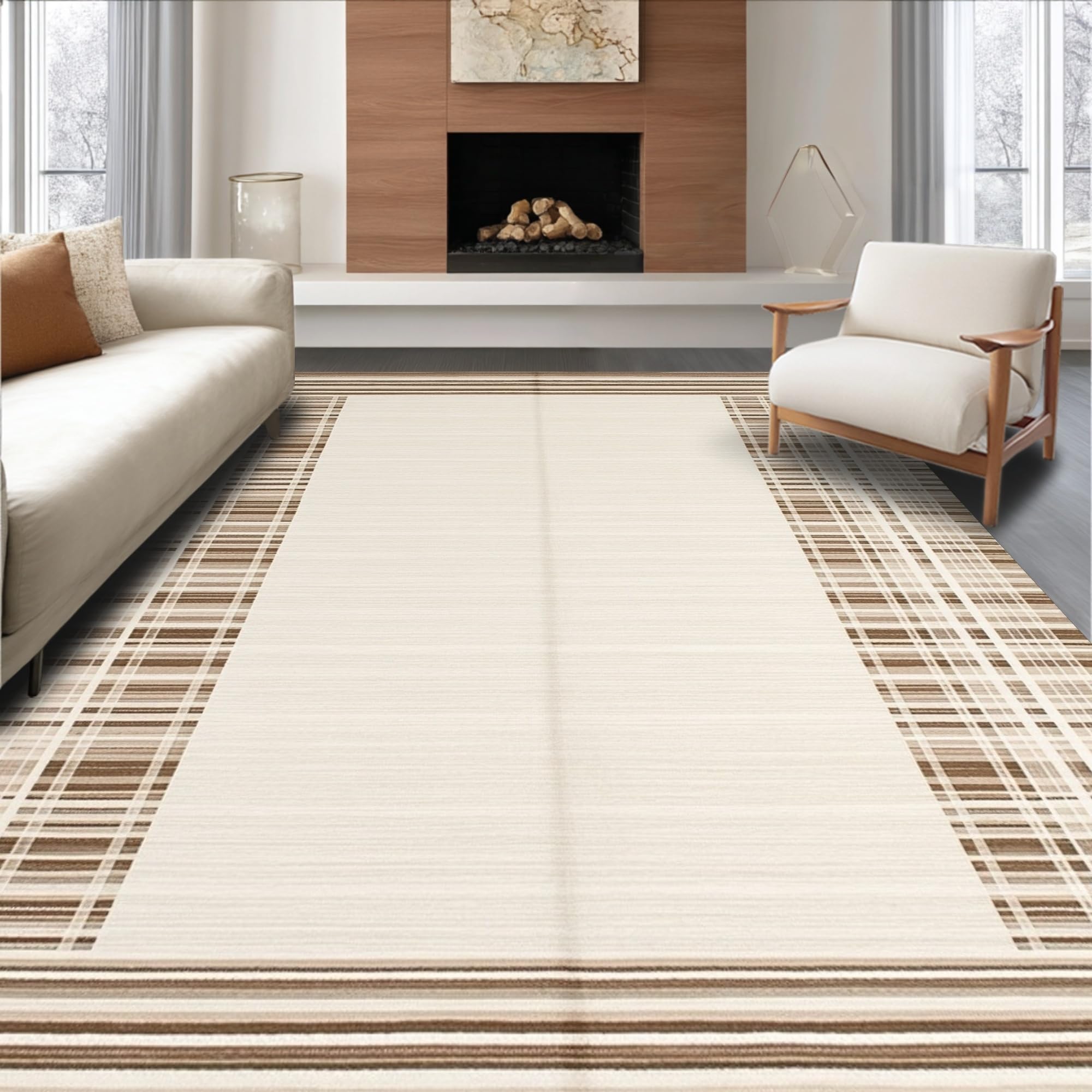 Contemporary Light Brown Geometric Theme(Beige)
