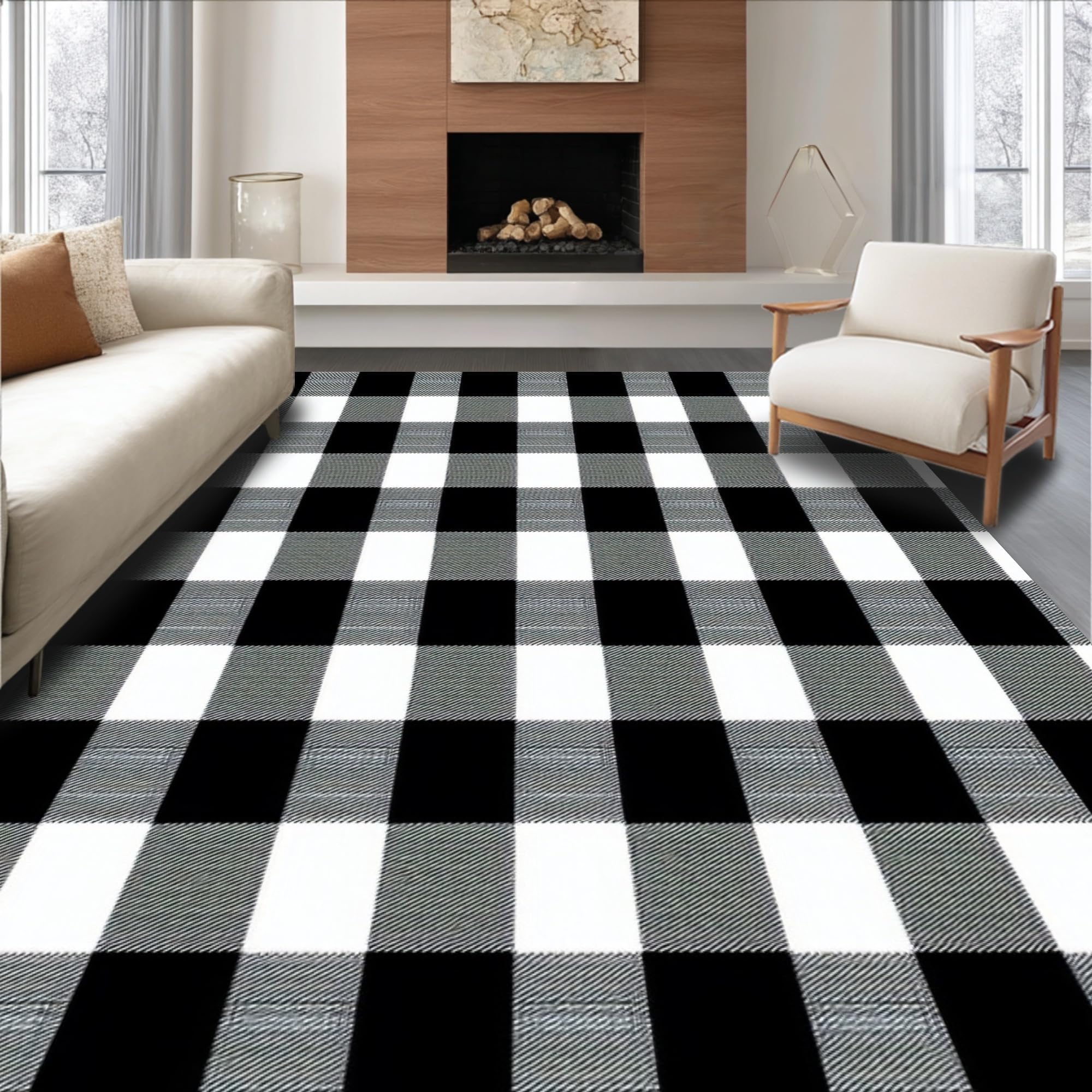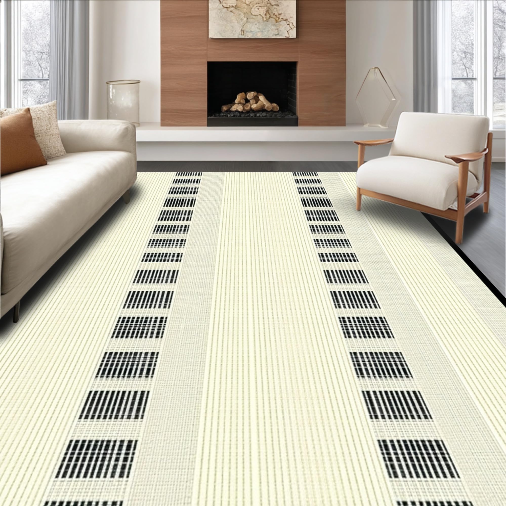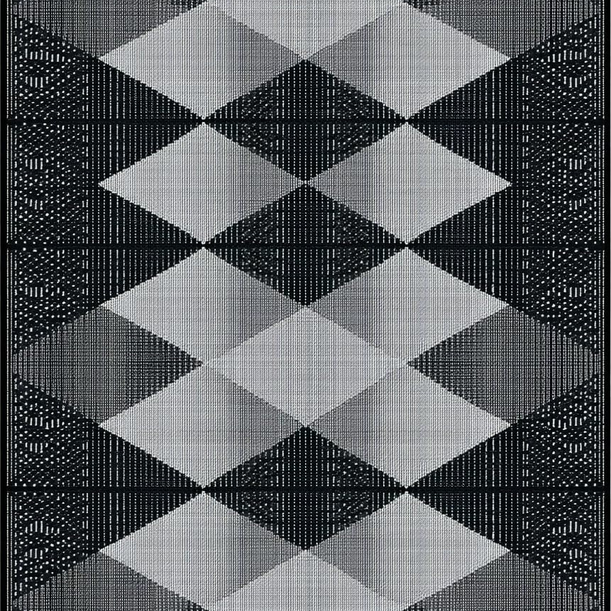 Contemporary Monochrome Striped With Diamond Lattice For Home(Black)