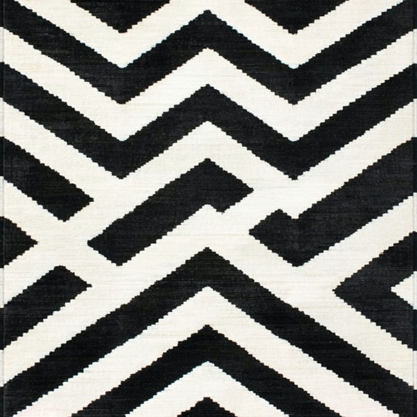 Contemporary Monochrome Zigzag Runner with Sharp Angular Stripes(Black)