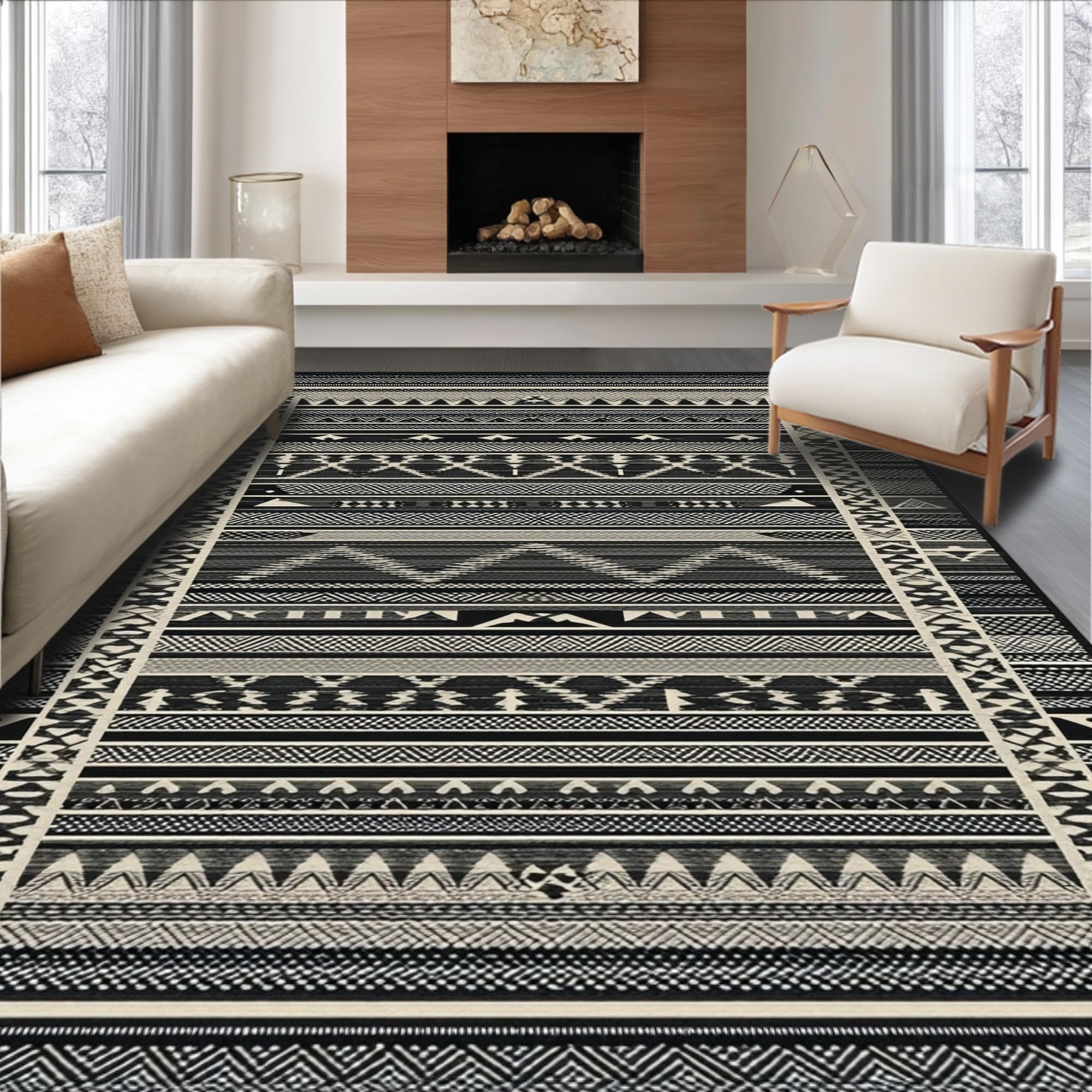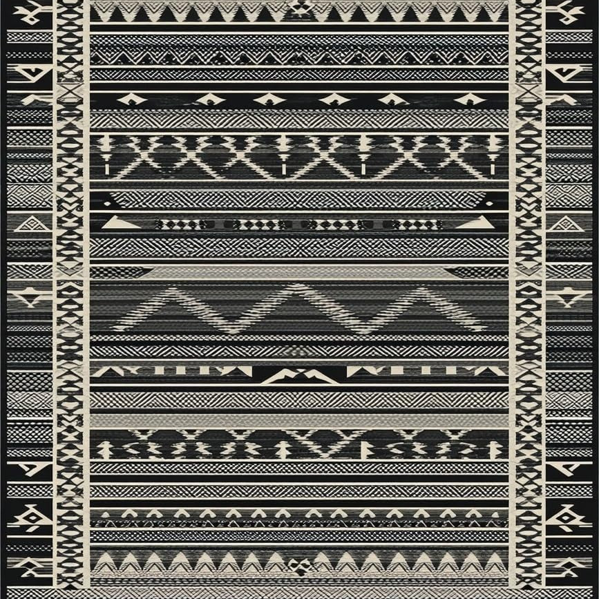 Contemporary Striped Runner Featuring Bold Black and White Contrast Bands(Black)