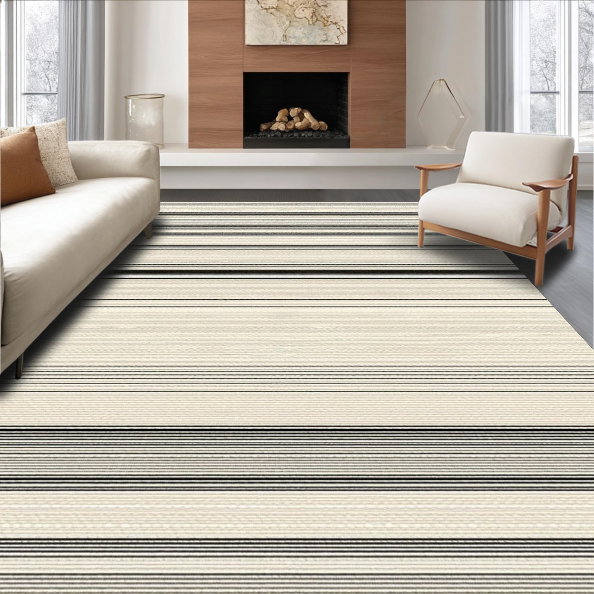 Contemporary Striped Runner – Stylish Beige Floor Covering(Beige)