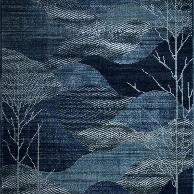 Contemporary Wavy Lines Oval(Navy)