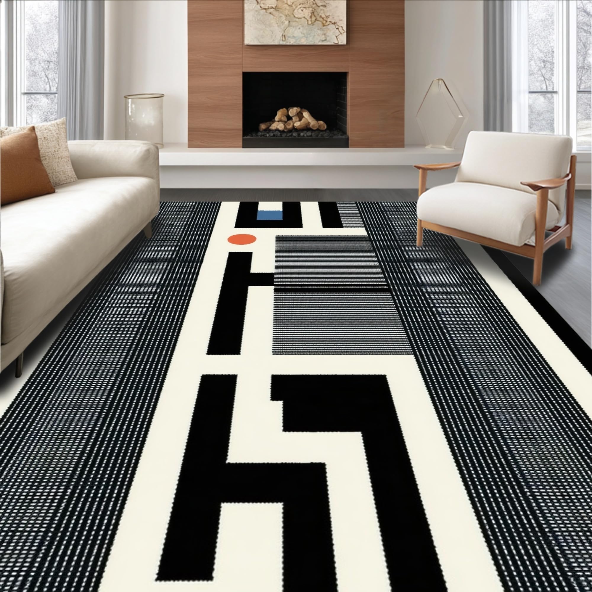 Contemporary Zebra Skin Inspired Non Slip Rug with Dynamic Linear Texture(Black)