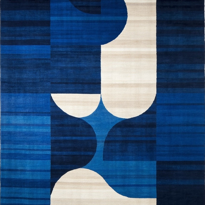 Contemporary with Bold Navy and Beige Stripes Design(Blue)