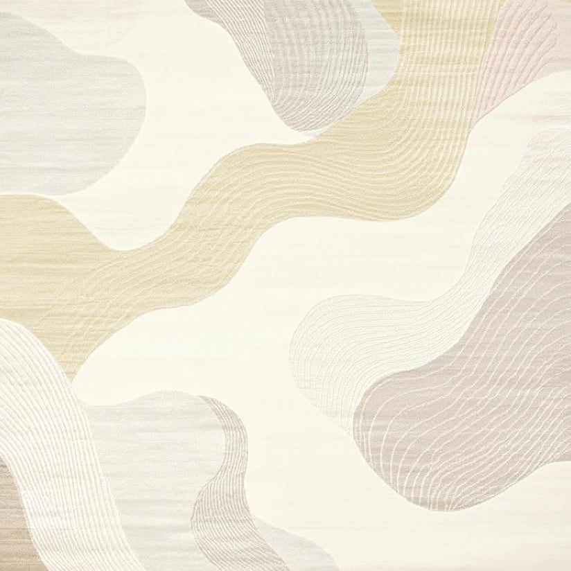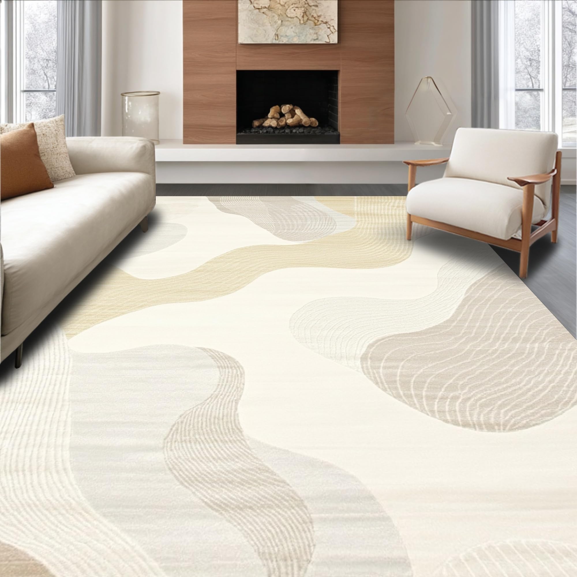 Abstract Cream Swirl Area Modern Neutral Floor Art(Beige)