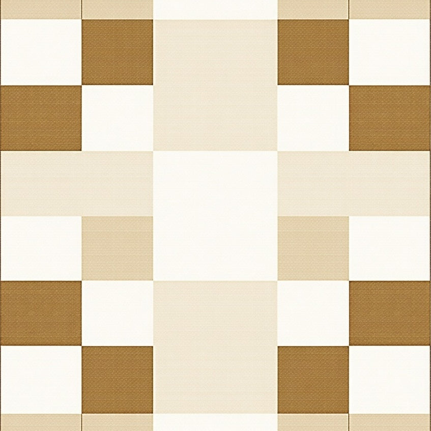 Cream & Tan Checkered Area Modern Block Print Floor(Beige)