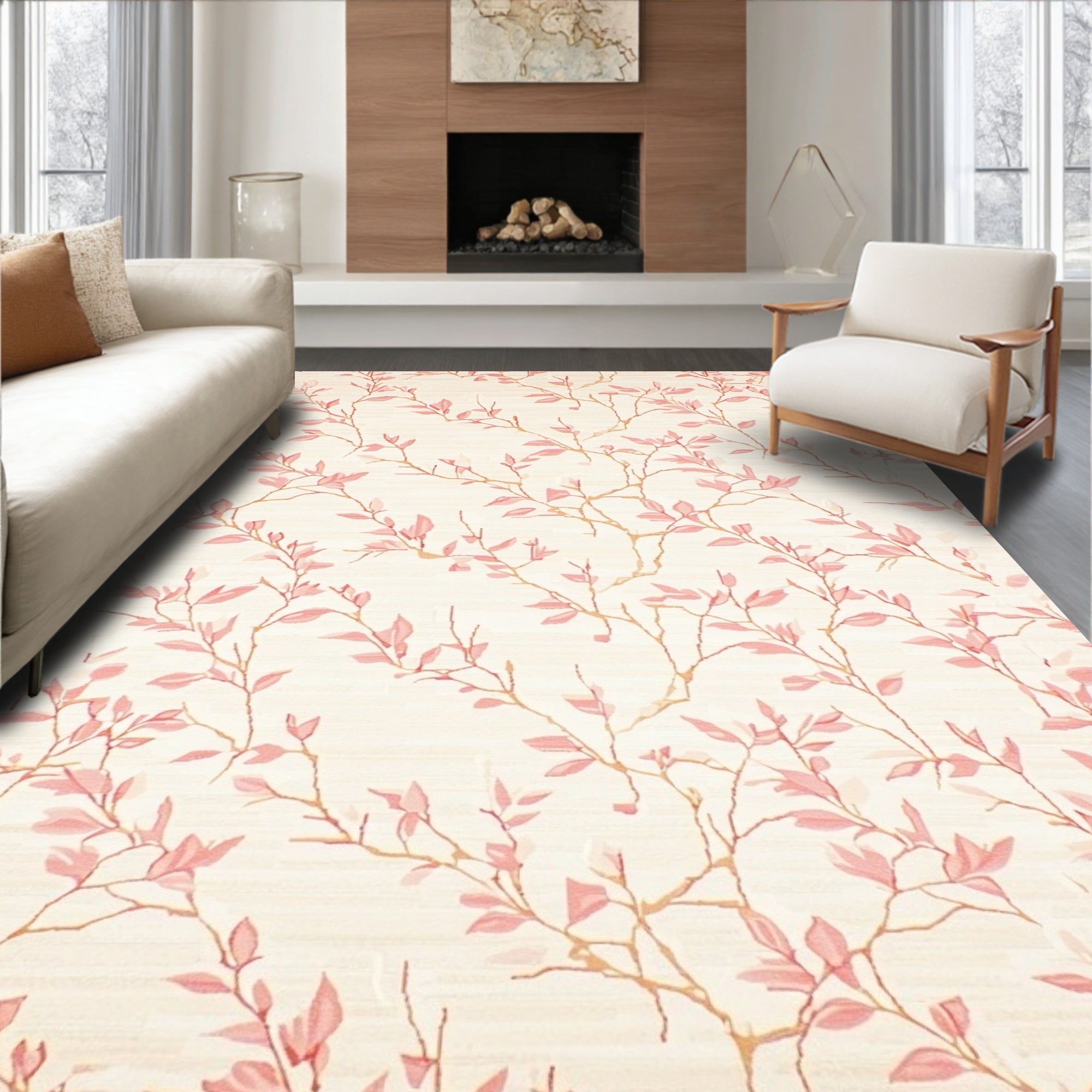 Cream Area Stylish with Subtle Pink and Beige Accents(Ivory)