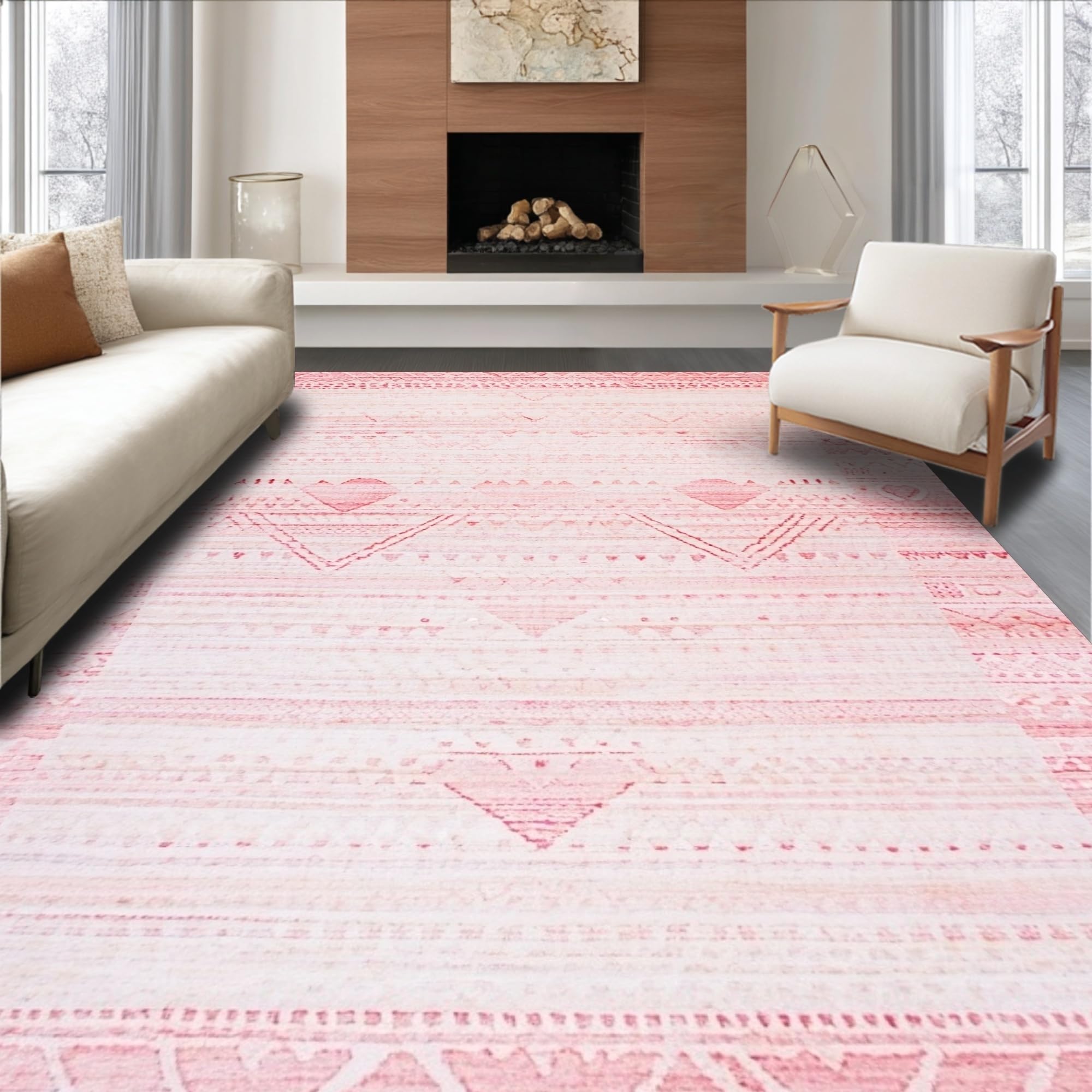 Delicate Mauve Toned Cozy Plush Floor Covering with Cute Shaggy Texture(Red)