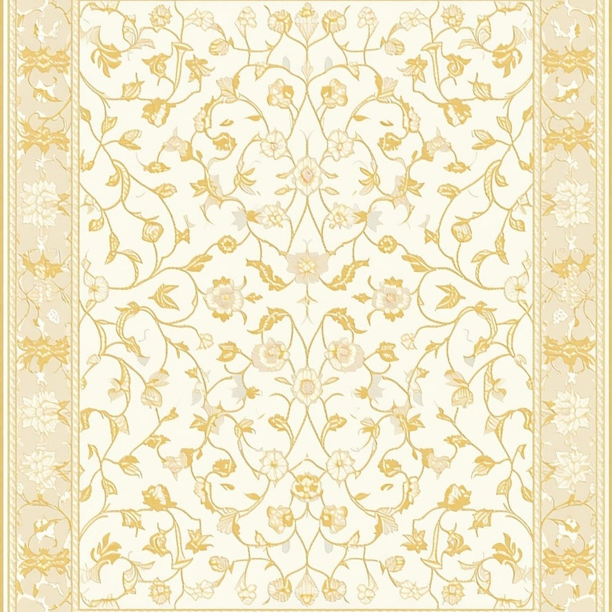 Delicate Scallop Vine Trail Area – Beige Field with Graceful Motif(Beige)