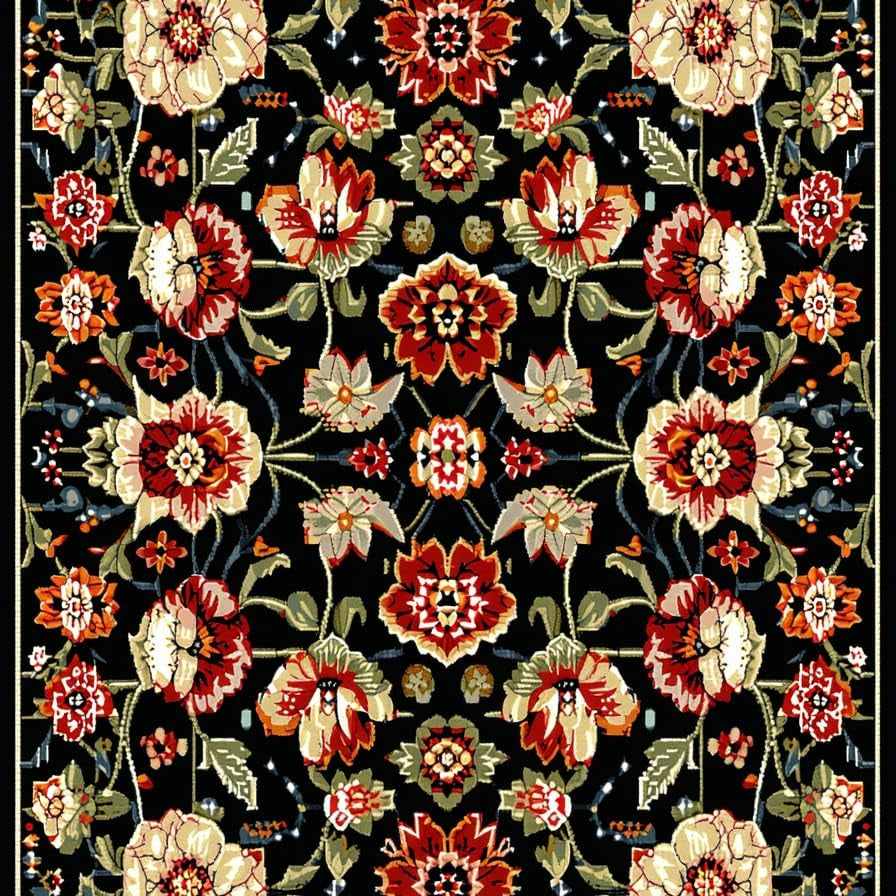 Delightful Low Pile Blooming Design(Black)
