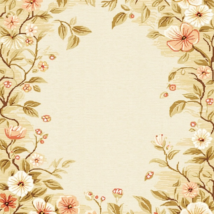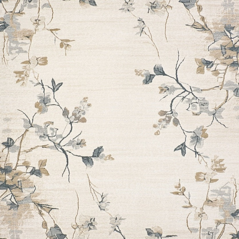 Desert Bloom Collection Area Beige Cream Botanical Motif Durable(Beige)