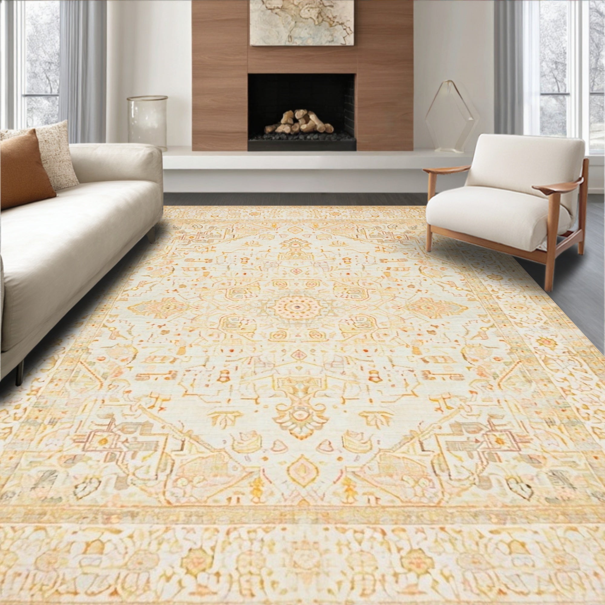 Deluxe Easy Clean Vintage Inspired Area With Secure Backing(Beige)