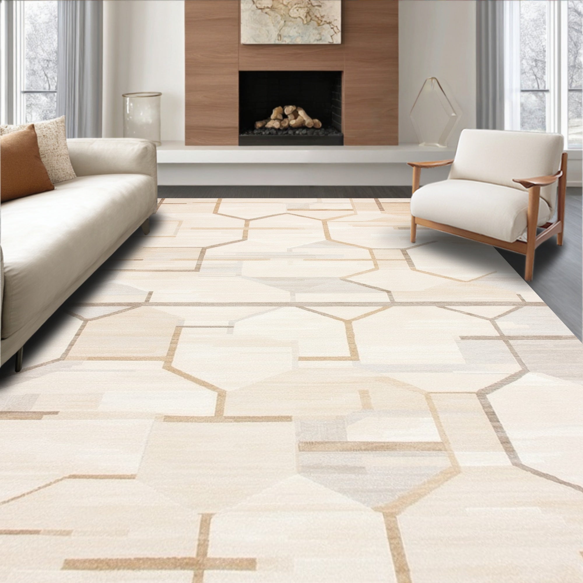 Desert Bloom Beige Ivory Geometric Floral Oasis Design(Beige)