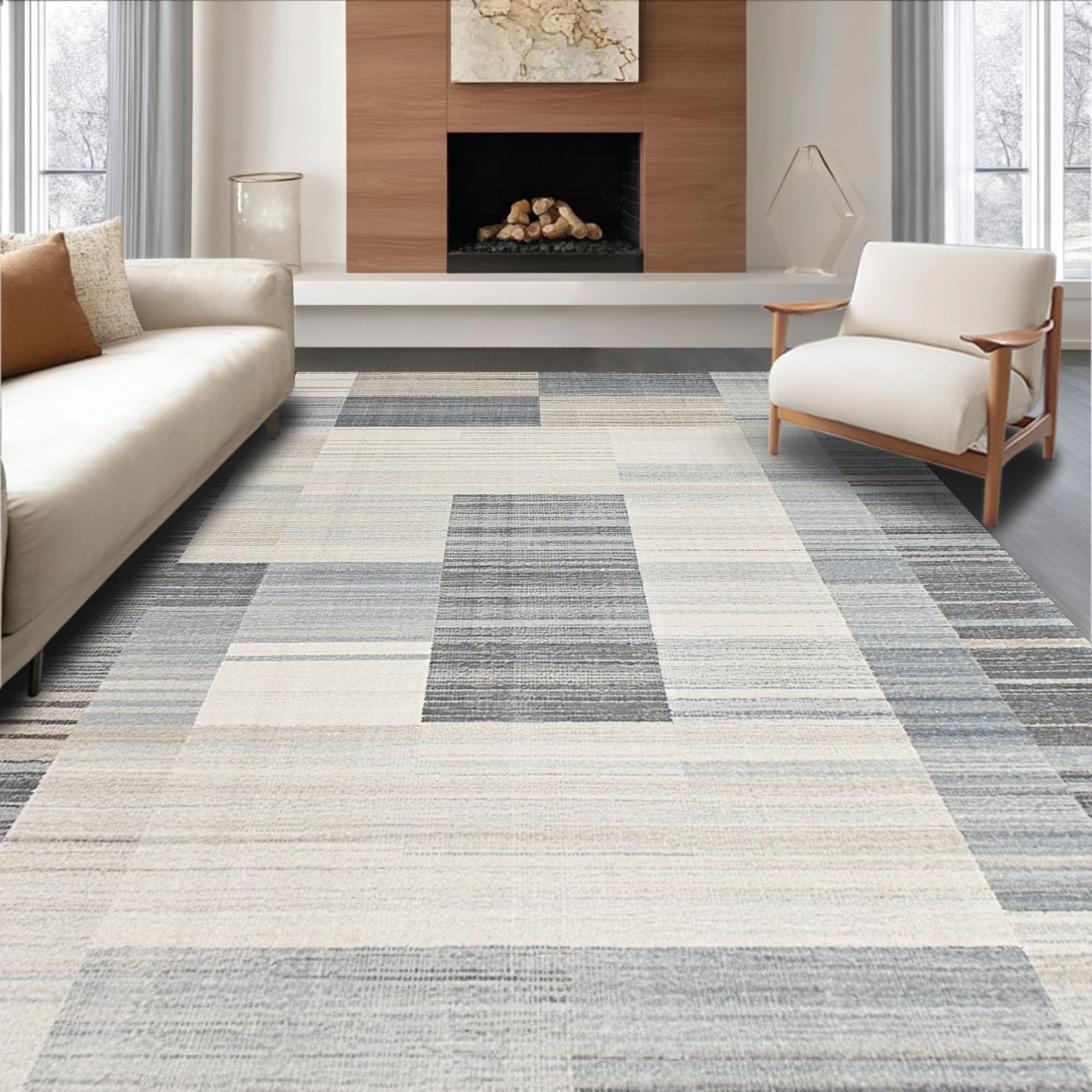 Designer Inspired Neutral Tone Plaid Look Area(Beige)
