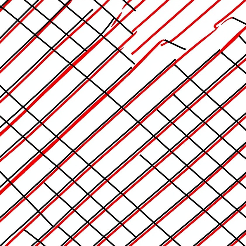 Diagonal Checkerboard Design with Crisp Contrasting Lines(Red)