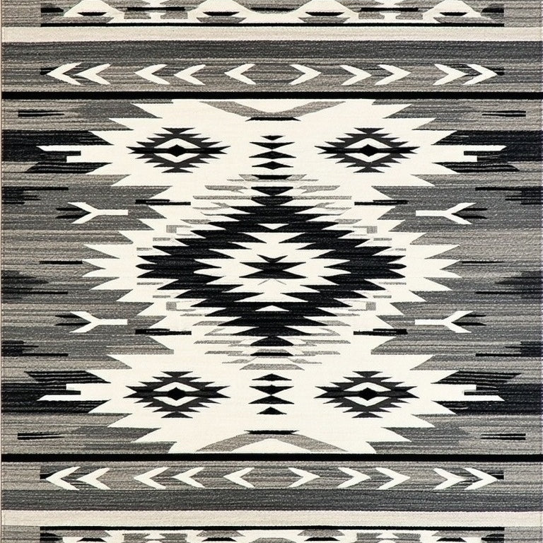 Desert Shadow Native Inspired Geometric Area With Tribal Accents(Black)