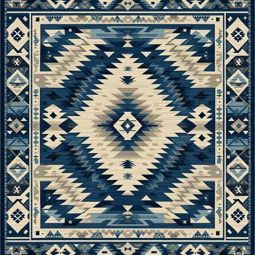 Desert Sky Oasis Dark Blue Beige Southwestern Motif(Blue)