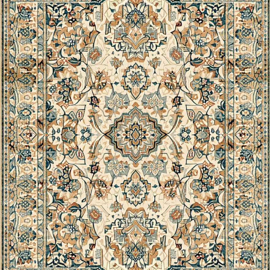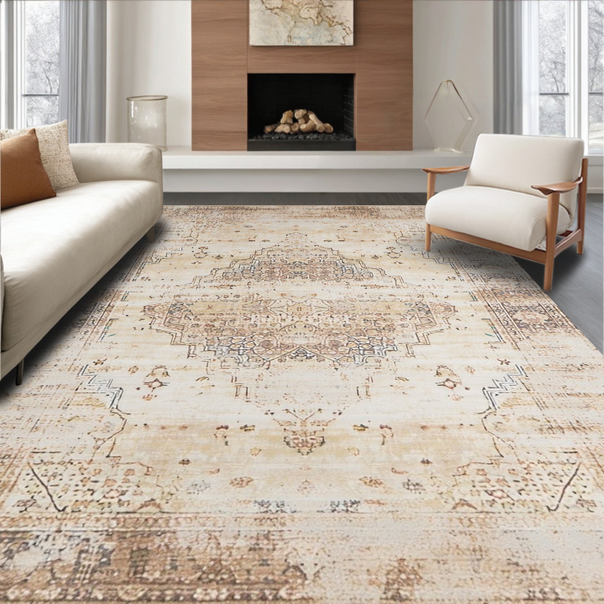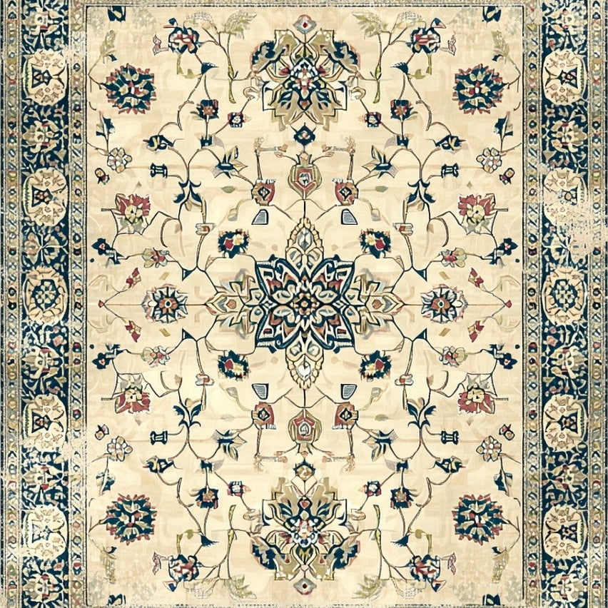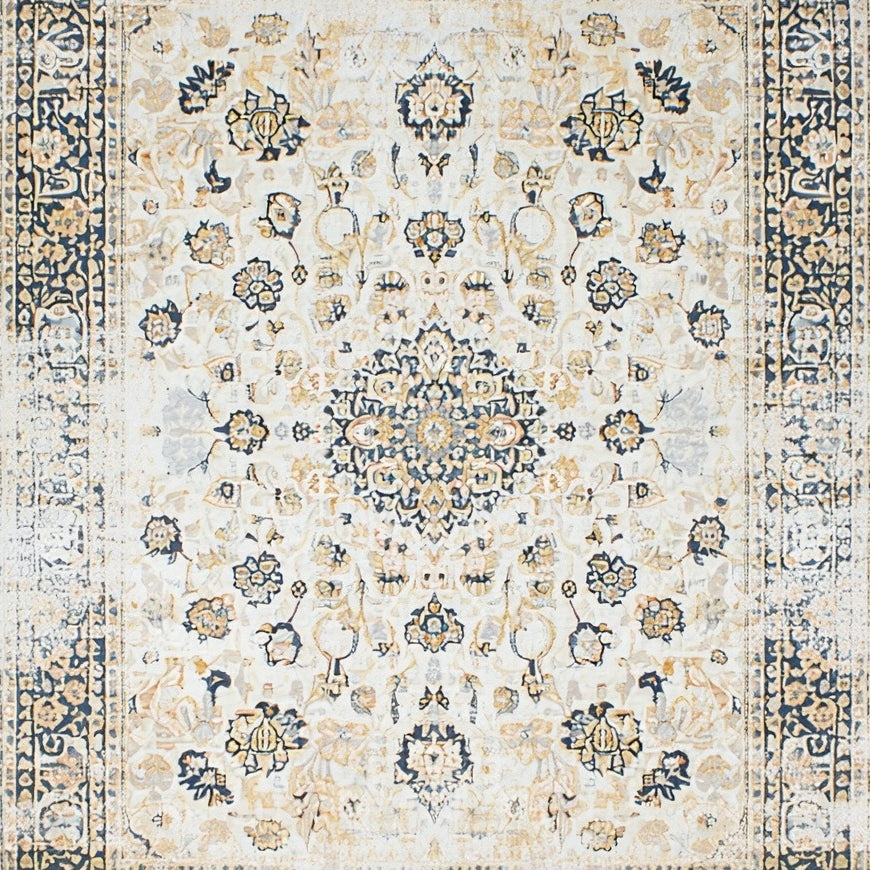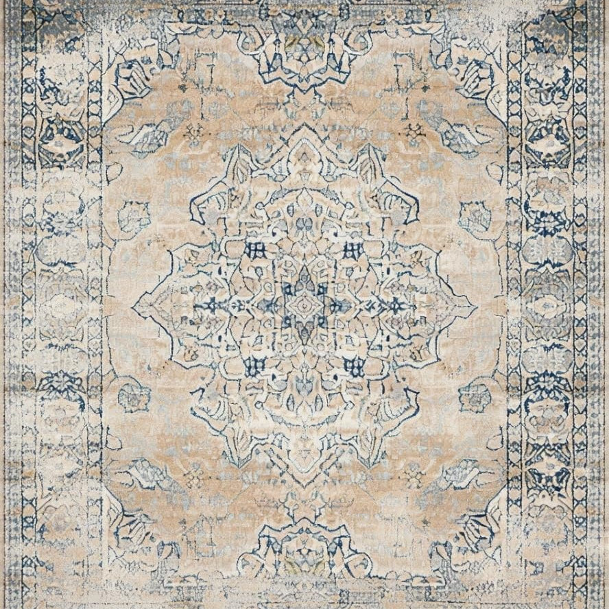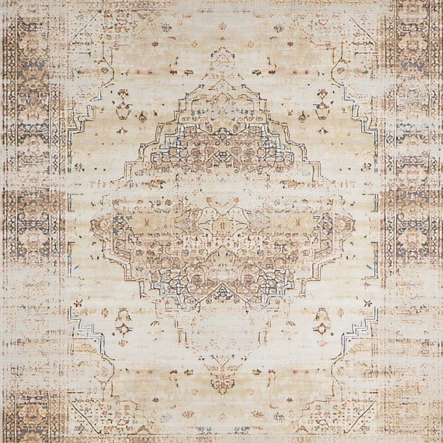 Distressed Vintage Medallion Design in Beige and Grey(Beige)