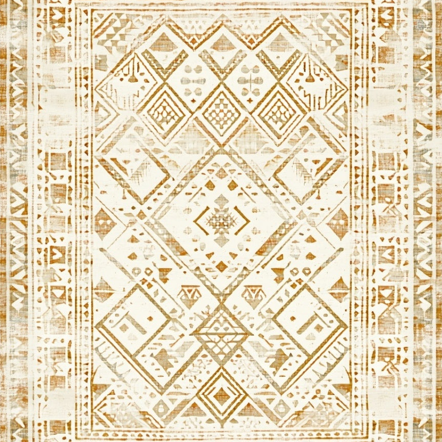 Distressed Tribal Inspired Geometric in Beige Tones(Beige)