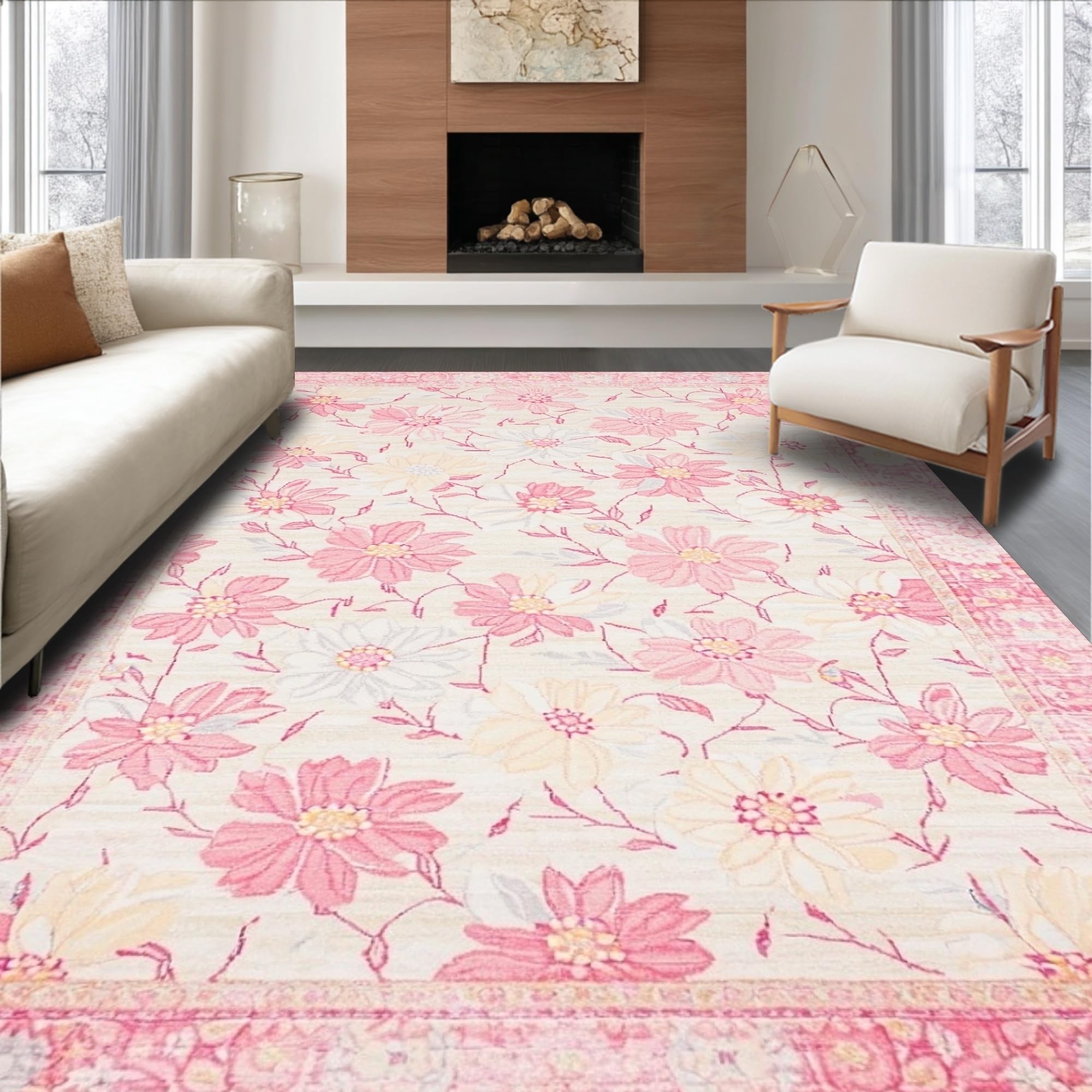 Dreamy Floral Medallion Accent Low Profile Construction(Pink)