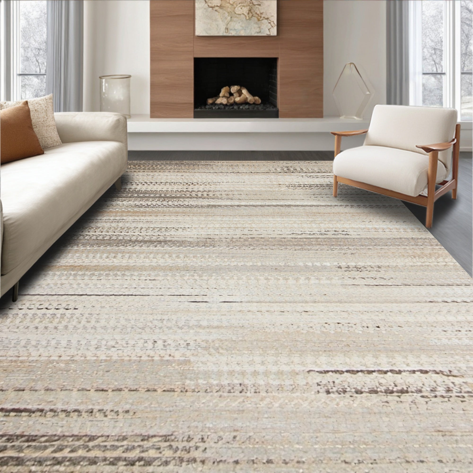 Durable Indoor Entry with Striped Design(Beige)