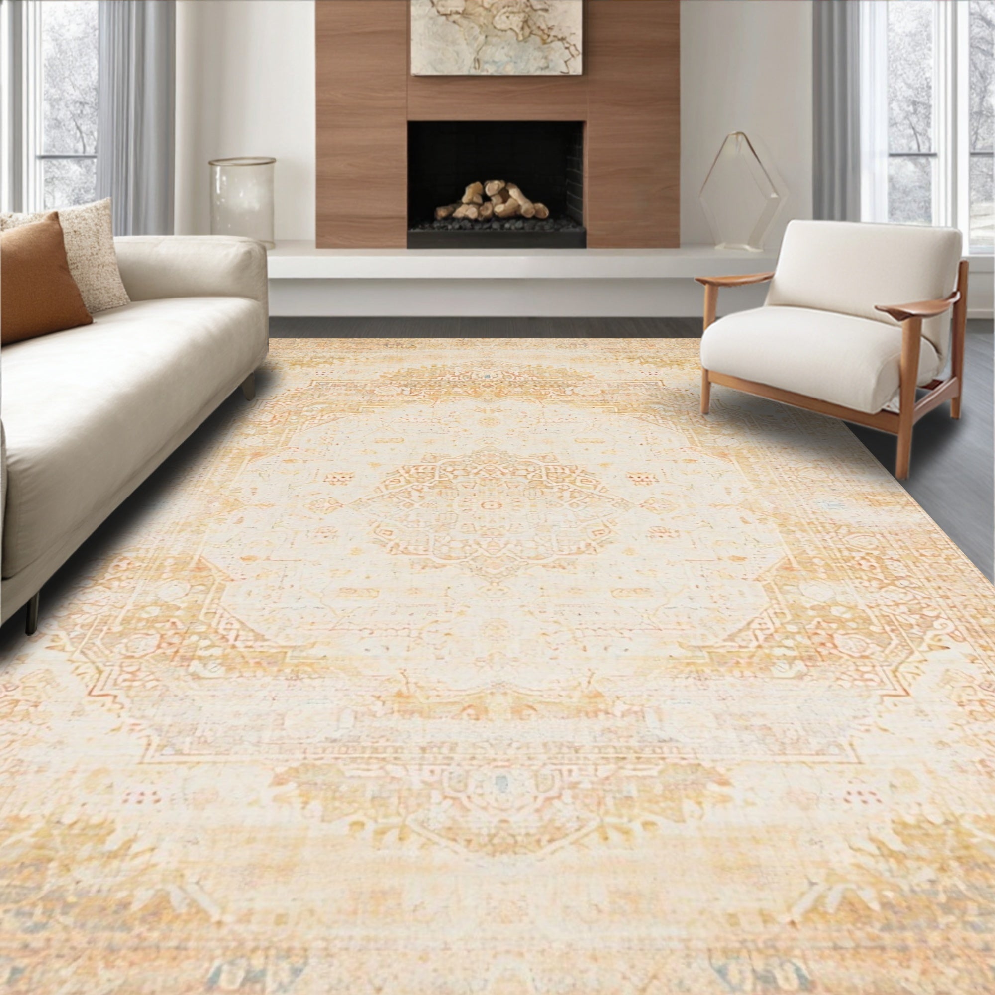 Durable with a Faded Abstract Medallion Motif in Beige(Beige)