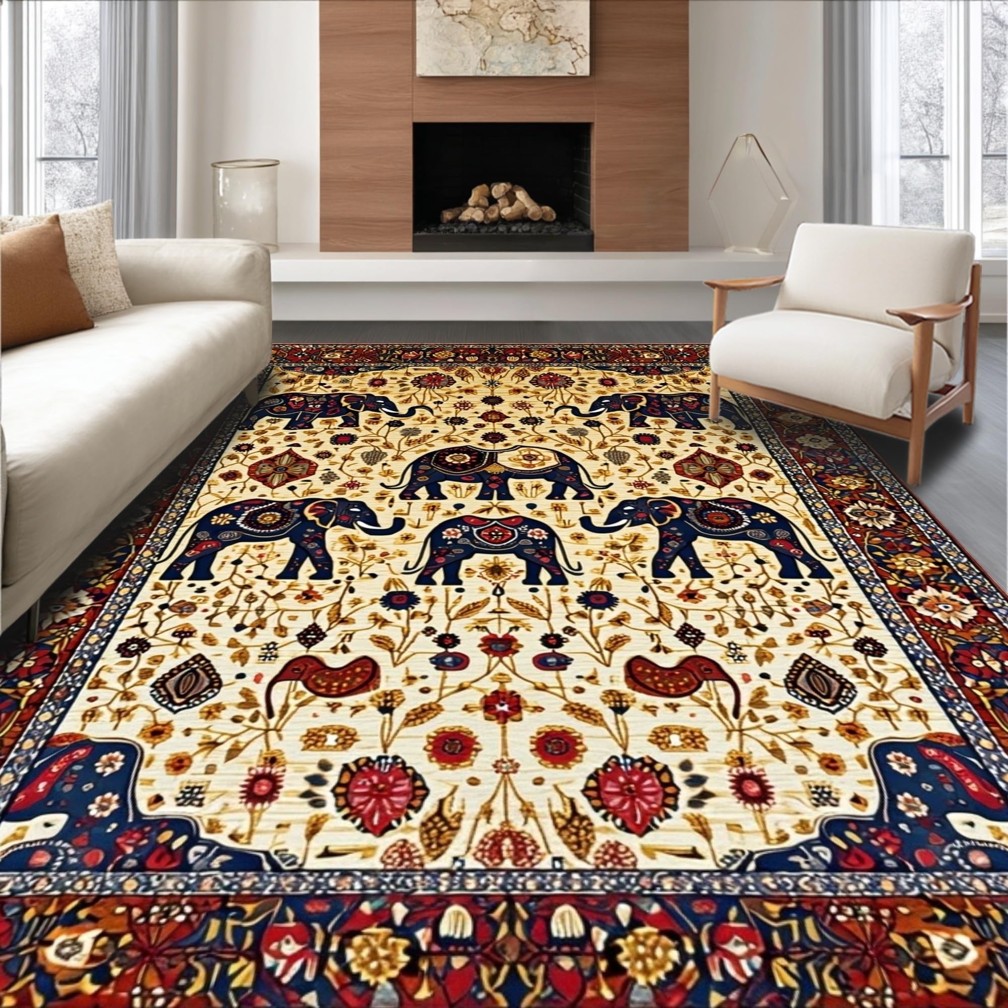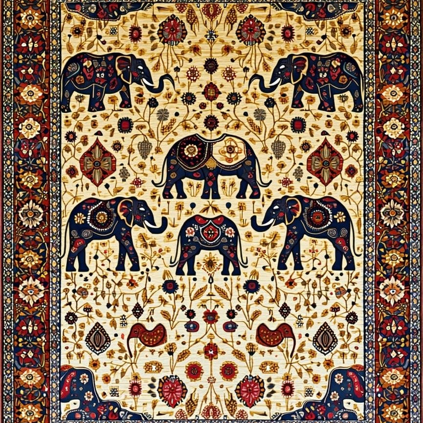 Dynamic Contemporary Elephant Imagery(Beige)