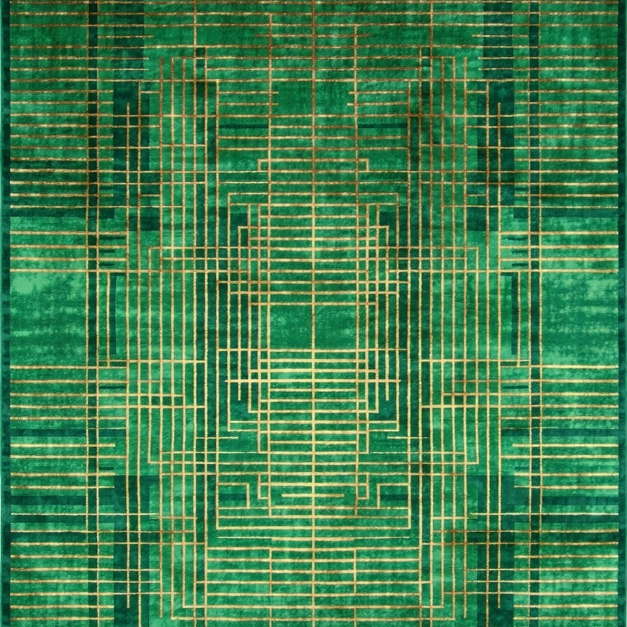 Dynamic Green and Gold Geometric Abstract Area for Modern Spaces(Green)